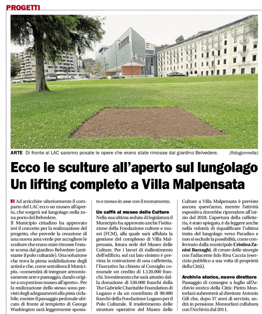 Corriere del Ticino: Lugano, nuova casa per le sculture